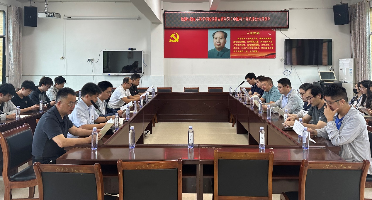 5月29日,物理与微电子科学学院教师和学生党员代表赴学校驻点帮扶村隆回县白水洞村开展“学党纪 明规矩 强党性”党纪学习教育主题党日活动,通过干部领学、研讨交流的形式,共同学习《中国共产党纪律处分条例》(...