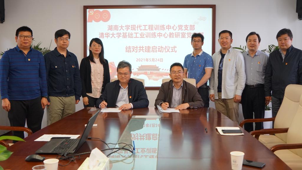 5月24日上午,湖南大学党委宣传部(新闻办公室)地址中心现代工程训练中心党支部与清华大学基础工业训练中心教研室党支部结对共建签约仪式在现代工程训练中心党建会议室举行。共建双方党支部书记、委员与党员代表参加本次活动。两个党支部以“共联共建,共享共促”为宗旨,以“学史鉴今,喜迎建党100周年”为主题,以“资源共享、优势互补、深度融合、共同提高”为原则,以组织建设互帮共建、主题党日活动交流、教育教学互动等为主要内容,加强组织领导,每年定...