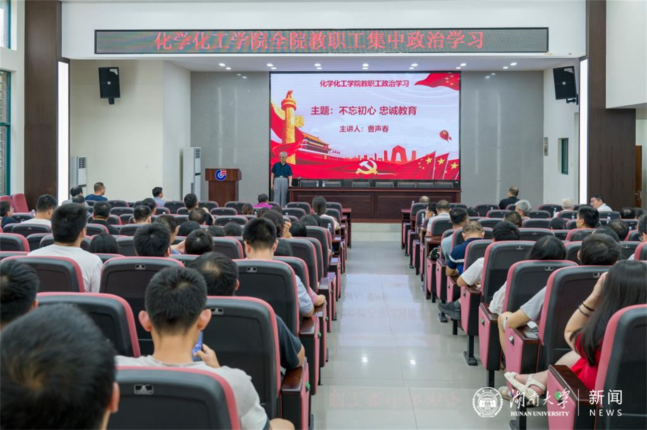 9月14日下午,化学化工学院于新化工楼D区报告厅开展了2021年第十八次全体教职工集中政治学习。本次集中学习主讲嘉宾为退休教授曹声春,授课主题为《不忘初心、忠诚教育》,学院全体教职工参与学习。曹声春教授以...