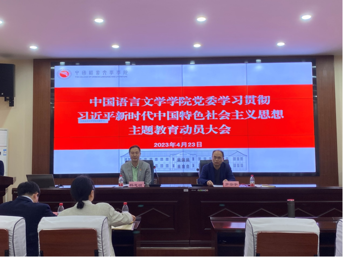 4月23日下午,中国语言文学学院党委在文学院207报告厅召开学习贯彻习近平新时代中国特色社会主义思想主题教育动员会。学校主题教育第一联络组、学院全体教职工、学生党员代表参加会议。会议指出,文学院党委将以...