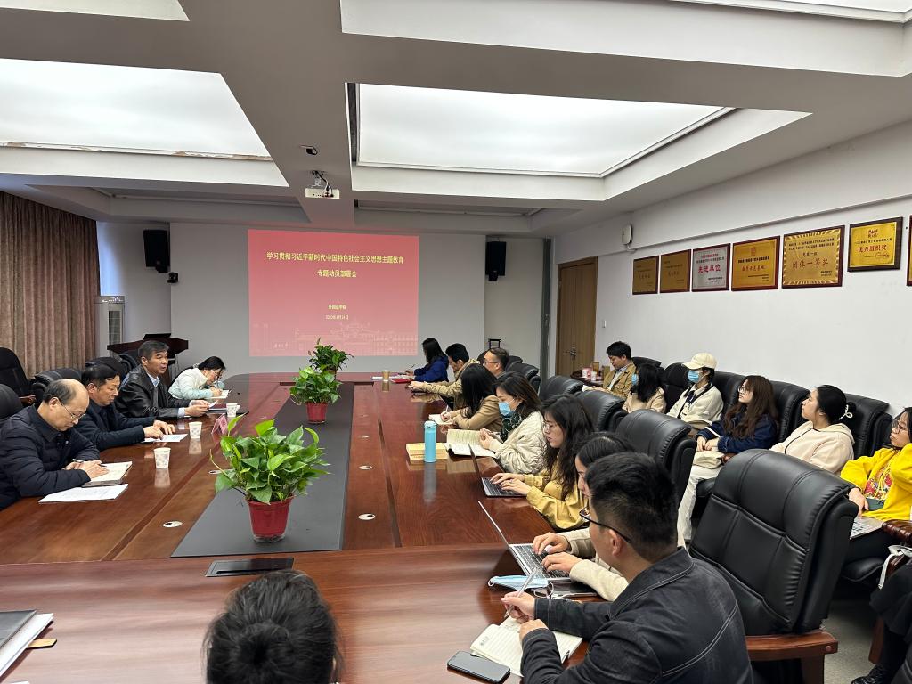 4月24日下午,外国语学院召开学习贯彻习近平新时代中国特色社会主义思想主题教育动员部署会,深入学习贯彻习近平总书记重要讲话精神,对学院深入开展主题教育工作进行动员和部署。学校第六联络组、学院师生代表参...